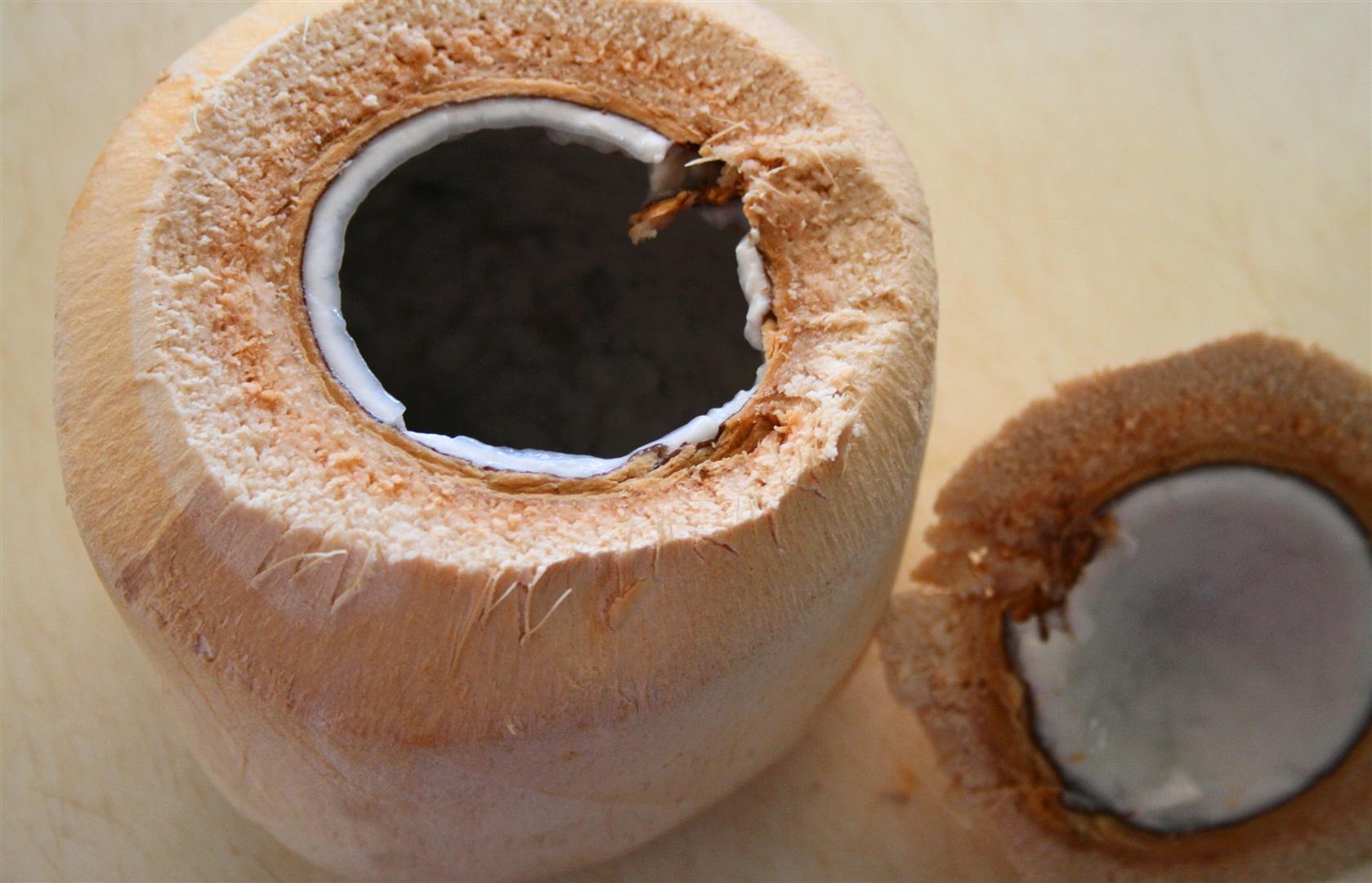 I remember the first time I tried to cut a young coconut. I had a dull knife (and couldn’t find a sharp one), but I was determined to crack that nut! Turns out, it was hard, but after butchering and chopping away at it…it finally worked.