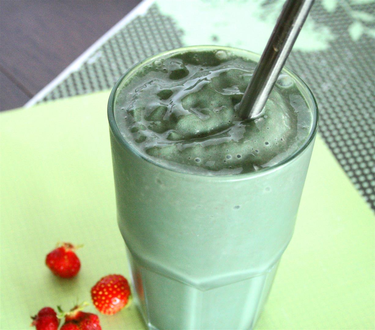 I’m always looking for ways to eat my beloved spirulina, and while I have some creative ideas brewing in my brain, I always revert back to spirulina smoothies. This one I made a few days ago and it is my newest smoothie obsession. Its almost like one of those creamy Starbuck frappas – but of course, I made